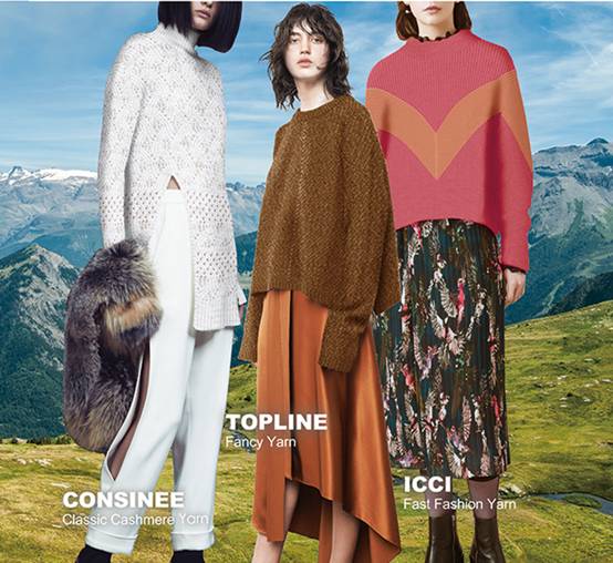 康賽妮集團旗下品牌有:一、CONSINEE 經(jīng)典羊絨紗線;二、TOP LINE高檔花式紗線;三、ICCI快時尚紗線。