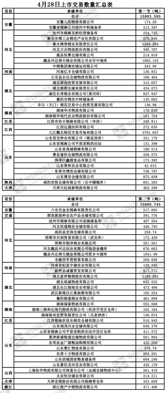 4月28日兩節(jié)共計(jì)輪出儲(chǔ)備棉30009.34噸。第一節(jié)銷(xiāo)售儲(chǔ)備棉15003.595噸,其中需要倒垛出庫(kù)90捆。第二節(jié)銷(xiāo)售儲(chǔ)備棉15005.745噸,其中需要倒垛出庫(kù)84捆。