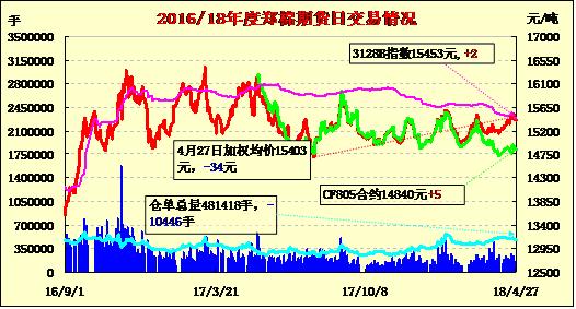 | 4月27日棉花期貨成交及持倉(cāng)排名表 | |||||||||