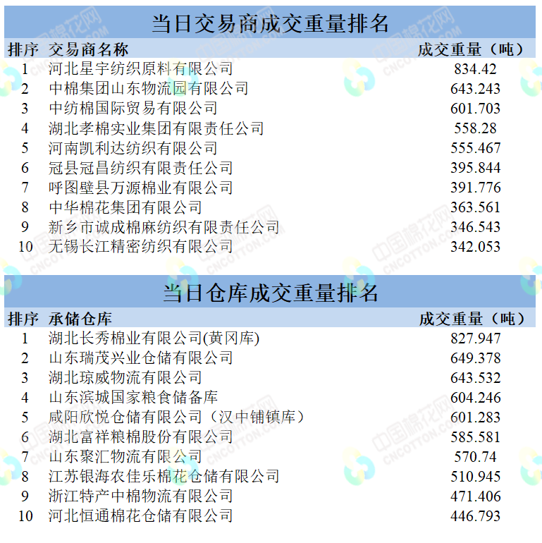 地產(chǎn)棉成交7529.434噸,成交率33%,成交均價13915元/噸,平均加價273元/噸,最高成交價15270元/噸,最低成交價13060元/噸;新疆棉成交7052.137噸,成交率100%,成交均價14640元/噸,平均加價883元/噸,最高成交價15320元/噸,最低成交價13880元/噸。