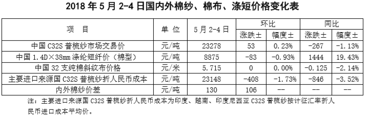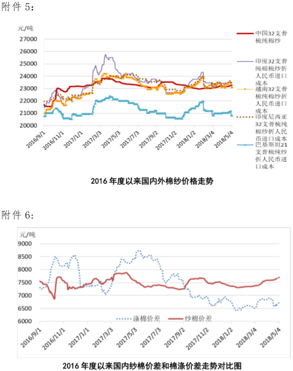 附件2:2018年5月2-4日國內(nèi)外棉紗價(jià)格變化表