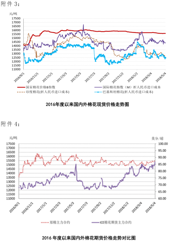附件1:2018年5月2-4日國內(nèi)外棉花價(jià)格變化表