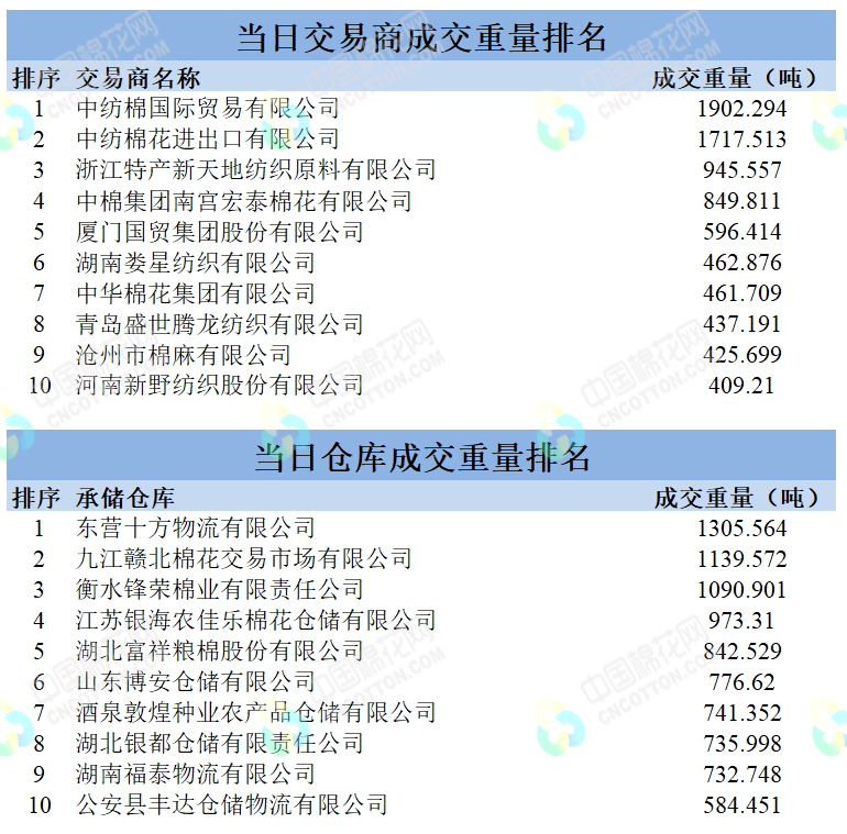 地產(chǎn)棉成交13779噸,成交率60%,成交均價(jià)13874元/噸,平均加價(jià)315元/噸,最高成交價(jià)15420元/噸,最低成交價(jià)13150元/噸;新疆棉成交7031噸,成交率100%,成交均價(jià)15029元/噸,平均加價(jià)1395元/噸,最高成交價(jià)16290元/噸,最低成交價(jià)14400元/噸。