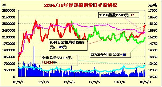 | CF807 | 15350 | 15360 | 15250 | 15275 | 15260 | -95 | 196 | 140 | 4070 | 1812 | 40 |