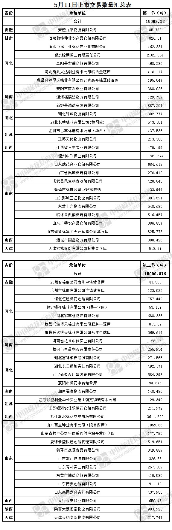 5月11日兩節(jié)共計輪出儲備棉30003.196噸。第一節(jié)銷售儲備棉15002.32噸,其中需要倒垛出庫72捆。第二節(jié)銷售儲備棉15000.876噸,其中需要倒垛出庫88捆。