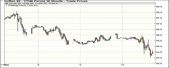 10日紐約期棉市場(chǎng)整體收跌。1807合約結(jié)算價(jià)84.56美分,跌130點(diǎn);1812合約結(jié)算價(jià)80.11美分,跌45點(diǎn);1903合約結(jié)算價(jià)79.88美分,跌30點(diǎn)。數(shù)日7月合約小幅高開(kāi),開(kāi)盤后呈窄幅震蕩趨勢(shì)運(yùn)行,在美棉出口周報(bào)發(fā)布后,裝運(yùn)量保持良好勢(shì)頭,市場(chǎng)提振應(yīng)聲走高,至當(dāng)日高點(diǎn)86.17美分處賣盤入場(chǎng),交易重心承壓走低,美國(guó)農(nóng)業(yè)部(USDA)發(fā)布5月全球供需預(yù)測(cè),本年度及2018/19年度期末庫(kù)存均下調(diào),一經(jīng)發(fā)布市場(chǎng)上行,但因不敵賣盤壓力,最終大幅收跌。據(jù)美國(guó)農(nóng)業(yè)部(USDA),4.26-5.3日一周美國(guó)凈簽約出口2017/18年度陸地棉43772噸(含新簽約48262噸,另取消4490噸前期訂單),較前一周增加2%,較近4周平均簽約量減少21%;裝運(yùn)2017/18年度陸地棉115780噸,較前一周增加18%,較近4周平均增加19%。據(jù)美國(guó)農(nóng)業(yè)部(USDA)最新發(fā)布的5月份全球棉花供需預(yù)測(cè)報(bào)告,2017/18年度全球棉花產(chǎn)量較4月份略有上調(diào),消費(fèi)量有所增加,期棉庫(kù)存微減。2018/19年度平衡表數(shù)據(jù)中,預(yù)計(jì)下年度全球棉花產(chǎn)量略減,消費(fèi)量增加,期末庫(kù)存有所減少。外圍美元指數(shù)下跌,小麥和玉米期貨下跌,大豆期貨上漲。