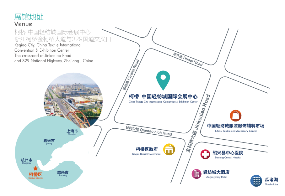 地址:柯橋.中國(guó)輕紡城國(guó)際會(huì)展中心(浙江柯橋金柯橋大道與329國(guó)道交叉口)