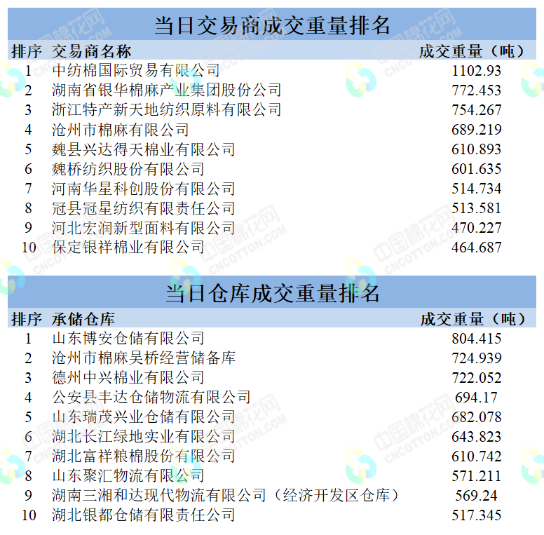 地產(chǎn)棉成交9156.63噸,成交率45%,成交均價(jià)13958元/噸,平均加價(jià)292元/噸,最高成交價(jià)14760元/噸,最低成交價(jià)13160元/噸;新疆棉成交9634.15噸,成交率100%,成交均價(jià)14903元/噸,平均加價(jià)1034元/噸,最高成交價(jià)16030元/噸,最低成交價(jià)14310元/噸。