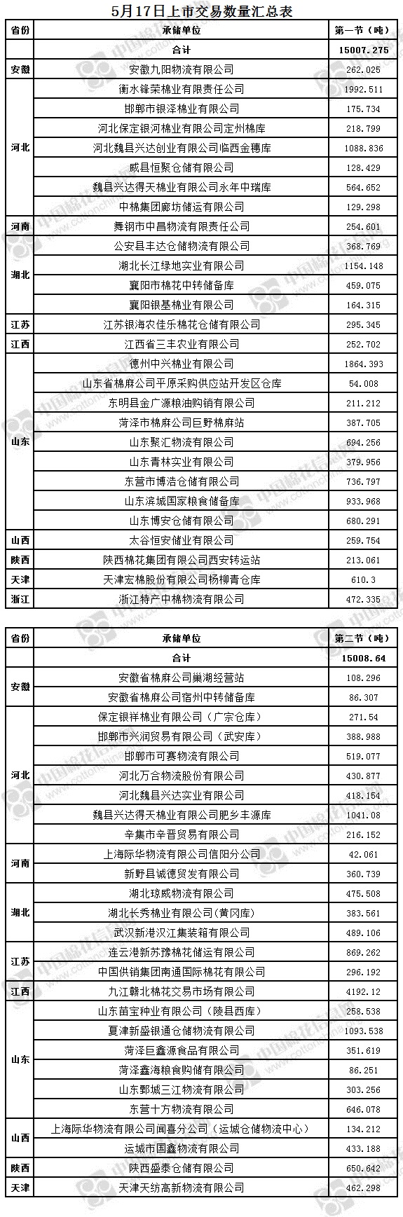 5月17日兩節(jié)共計輪出儲備棉30015.915噸。第一節(jié)銷售儲備棉15007.275噸,其中需要倒垛出庫71捆。第二節(jié)銷售儲備棉15008.64噸,其中需要倒垛出庫89捆。