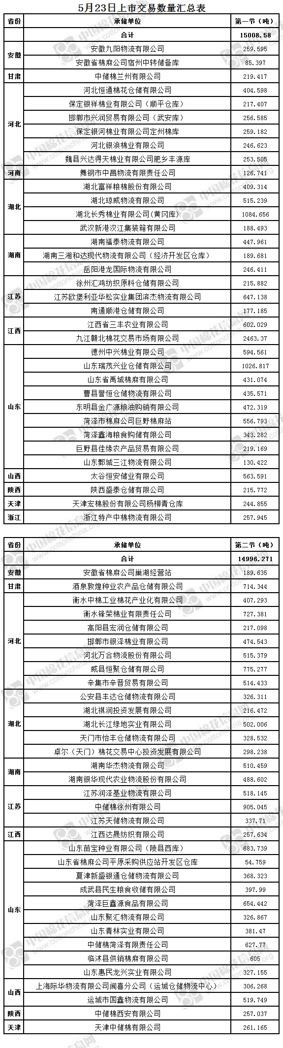 5月23日兩節(jié)共計輪出儲備棉30004.851噸。第一節(jié)銷售儲備棉15008.58噸,其中需要倒垛出庫97捆。第二節(jié)銷售儲備棉14996.271噸,其中需要倒垛出庫98捆。