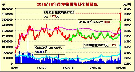 | CF807 | 16850 | 16960 | 16620 | 16690 | 16770 | 210 | 5694 | -136 | 29400 | 12482 | 1364 |