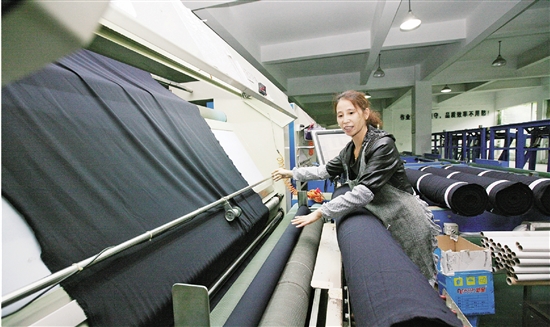 浙江宇華控股集團有限公司今年1-4月銷售各類面料48萬米,比去年同期增長26%。公司產(chǎn)品主要銷往VERO、MODA、H兔、太平鳥、CCDD、樂町等國際國內(nèi)服裝品牌企業(yè)。公司銷售暢銷不衰的根源在于公司上下十分注重產(chǎn)品質(zhì)量檢測,從坯布進入印染廠就開始進行頭道檢驗,成品外觀檢驗和內(nèi)質(zhì)檢驗后方可打卷入庫。圖為質(zhì)檢人員正在對成品布進行外觀疵點檢驗。(標(biāo)題: “宇華控股”嚴把質(zhì)檢關(guān))