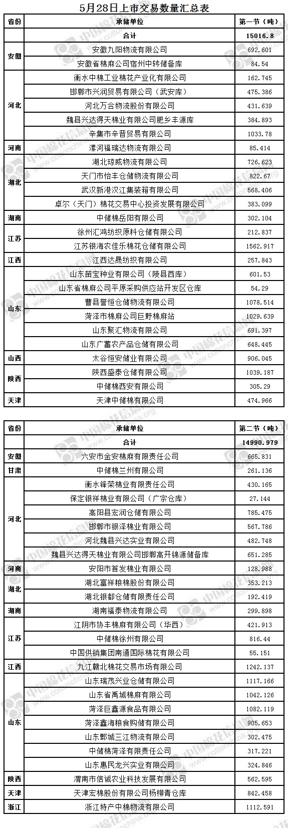 5月28日兩節(jié)共計(jì)輪出儲(chǔ)備棉30007.779噸。第一節(jié)銷售儲(chǔ)備棉15016.8噸,其中需要倒垛出庫78捆。第二節(jié)銷售儲(chǔ)備棉14990.979噸,其中需要倒垛出庫94捆。