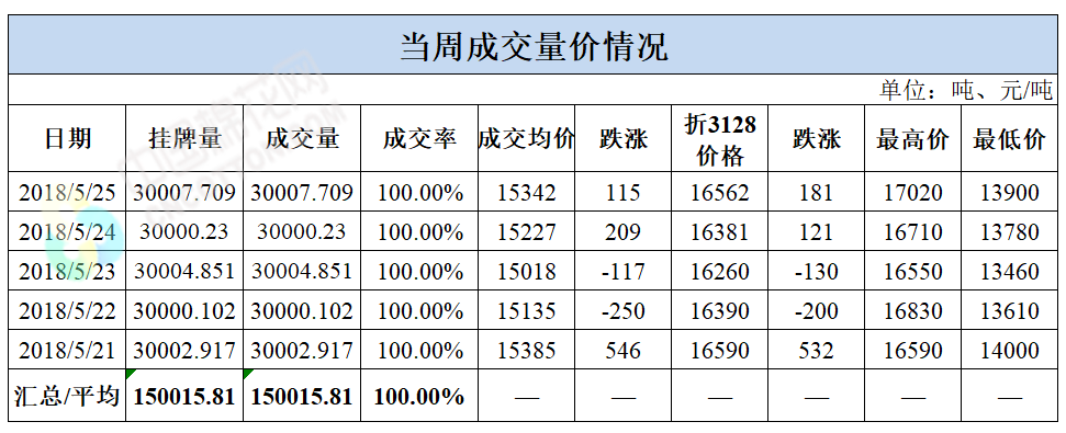 累計情況:截至5月25日,累計計劃出庫159萬噸,累計出庫成交97.3萬噸,成交率為61%;成交最高價17020元/噸,最低價13900元/噸。