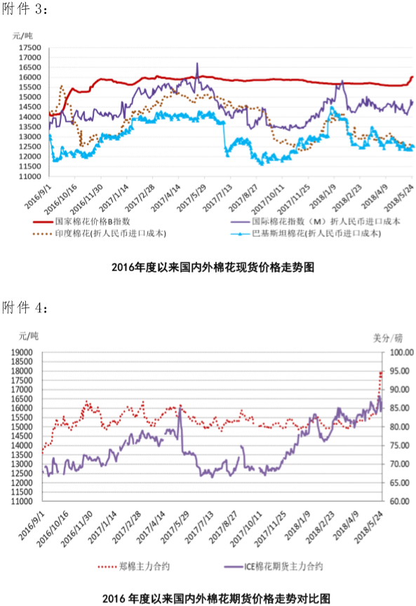 附件4:2016年度以來(lái)國(guó)內(nèi)外棉花期貨價(jià)格走勢(shì)圖