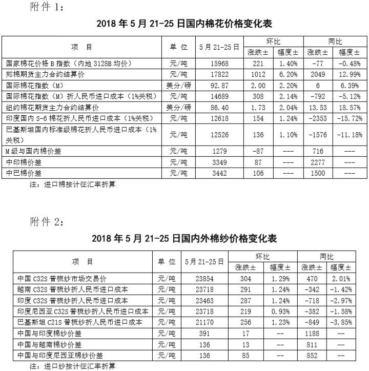 附件1:2018年5月21-25日國(guó)內(nèi)外棉花價(jià)格變化表