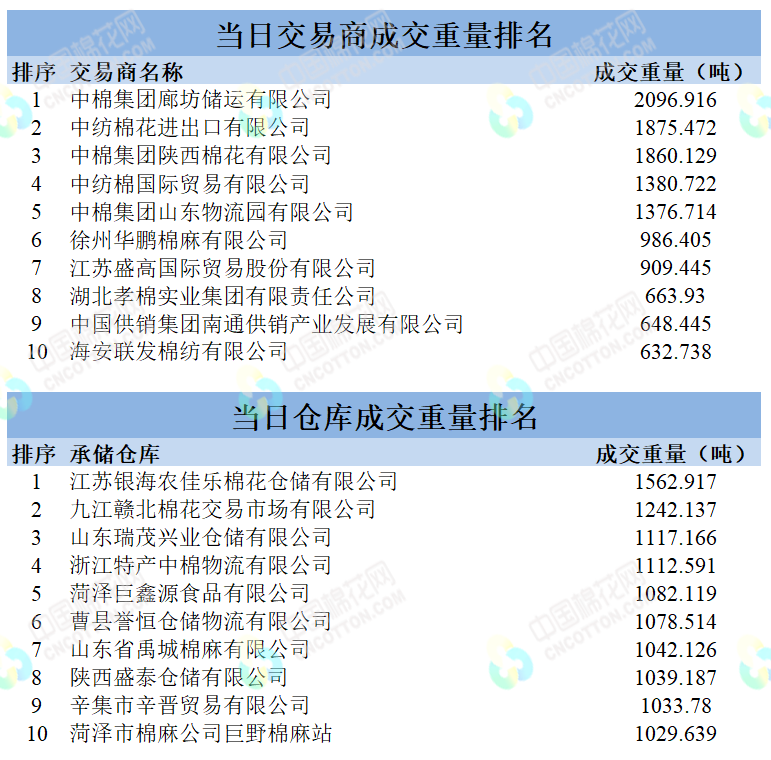 地產(chǎn)棉成交8209.69噸,成交率100%,成交均價(jià)14692元/噸,平均加價(jià)694元/噸,最高成交價(jià)16010元/噸,最低成交價(jià)14020元/噸;新疆棉成交21798.089噸,成交率100%,成交均價(jià)15597元/噸,平均加價(jià)1513元/噸,最高成交價(jià)16730元/噸,最低成交價(jià)14630元/噸。