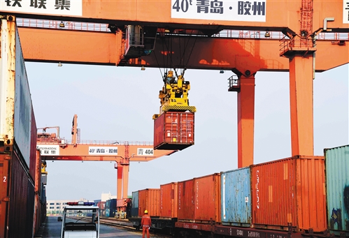 在青島膠州灣國際物流園,龍門塔吊正在往中亞(青島)國際班列上裝載貨物(5月7日攝)。截至5月29日,2010年開行的中亞(青島)國際班列青島地區(qū)已開行3039列。中亞(青島)國際班列密切聯(lián)系著青島與上合組織有關(guān)國家的經(jīng)貿(mào)往來。