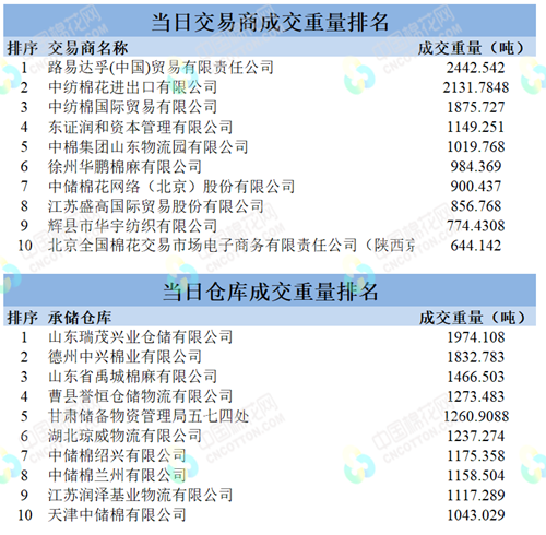 地產(chǎn)棉成交5210.929噸,成交率100%,成交均價15591元/噸,平均加價1441元/噸,最高成交價16530元/噸,最低成交價14520元/噸;新疆棉成交24797.7682噸,成交率100%,成交均價16010元/噸,平均加價1828元/噸,最高成交價17240元/噸,最低成交價15300元/噸。