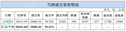 累計情況:截至6月4日,累計計劃出庫177萬噸,累計出庫成交115萬噸,成交率為65%;成交最高價17700元/噸,最低價12700元/噸。