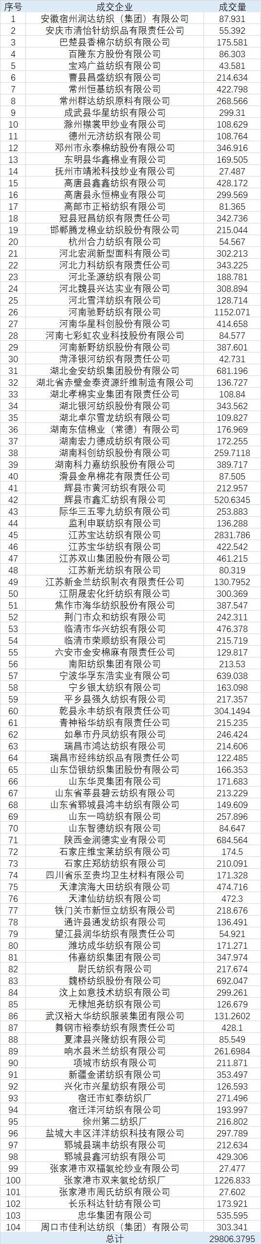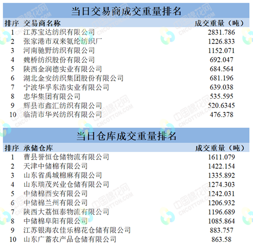 地產(chǎn)棉成交6283.914噸,成交率97%,成交均價14791元/噸,平均加價399元/噸,最高成交價15880元/噸,最低成交價13960元/噸;新疆棉成交23522.4655噸,成交率100%,成交均價15601元/噸,平均加價978元/噸,最高成交價17700元/噸,最低成交價14570元/噸。