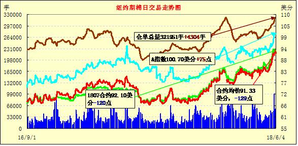 4日紐約期棉市場整體收跌。1807合約結(jié)算價92.10美分,跌120點(diǎn);1812合約結(jié)算價90.94美分,跌142點(diǎn);1903合約結(jié)算價90.69美分,跌131點(diǎn)。12月合約穩(wěn)定開盤后受買盤支撐交易重心小幅走高,高點(diǎn)處賣盤入場,市場承壓下行,擊穿92美分一線,后在91.50-92.00美分區(qū)間震蕩運(yùn)行,因缺乏有力支撐,跌幅加深,最終結(jié)束7日連漲,以大幅下跌收盤。某大型多頭基金于上周五完成7-12月移倉。聽聞另一投機(jī)基金預(yù)計于本周四開始移倉。在美國白宮官網(wǎng)發(fā)表聲明稱“美國將對從中國進(jìn)口的包括高科技產(chǎn)品在內(nèi)的總值500億美元的產(chǎn)品征收25%的關(guān)稅,其中包括與“中國制造2025”計劃相關(guān)的產(chǎn)品”之后,市場普遍關(guān)注中美貿(mào)易談判的走向。外圍美元指數(shù)下跌,大豆、玉米和小麥期貨下跌。