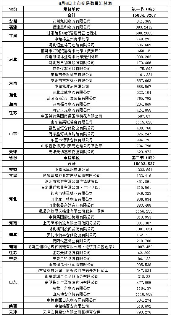 6月6日兩節(jié)共計(jì)輪出儲備棉30006.8537噸。第一節(jié)銷售儲備棉15004.3267噸,其中需要倒垛出庫76捆。第二節(jié)銷售儲備棉15002.527噸,其中需要倒垛出庫103捆。