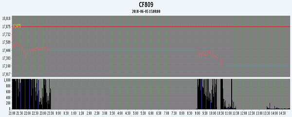 6月5日隔夜鄭棉探低反彈,今日早盤震蕩盤整后在平倉盤壓制下走低并收于跌停,日線形成長陰線。日內(nèi)成交量萎縮,持倉量減少?;久媲闆r:受中國棉花協(xié)會發(fā)布預(yù)警,近期將增發(fā)部分進(jìn)口滑準(zhǔn)稅配額,而這個消息的出臺,將緩解棉花供應(yīng)緊張預(yù)期。而目前市場仍存在分歧,一是增加配額肯定是利空市場,二是下半年發(fā)配額,沒什么棉花可以進(jìn)口了,而且發(fā)改委并沒有正式落實。因此現(xiàn)貨市場也觀望較濃,整體基本維持價格。目前市場上新棉現(xiàn)貨因價高而難有成交,基本成交集中在國儲上。