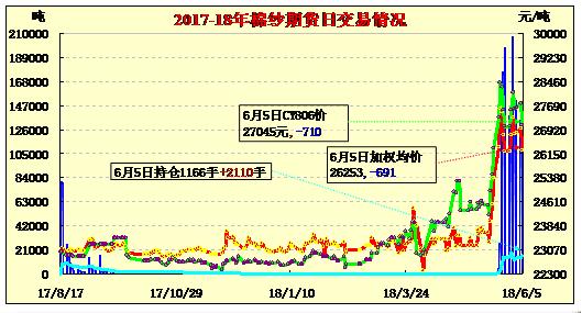 | 6月5日棉紗期貨成交及持倉(cāng)排名表 | |||||||||