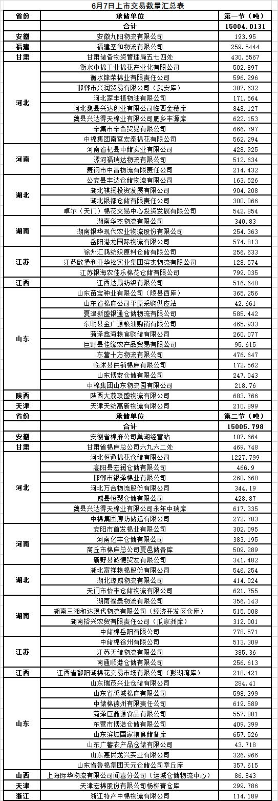 6月7日兩節(jié)共計(jì)輪出儲(chǔ)備棉30009.8111噸。第一節(jié)銷售儲(chǔ)備棉15004.0131噸,其中需要倒垛出庫(kù)88捆。第二節(jié)銷售儲(chǔ)備棉15005.798噸,其中需要倒垛出庫(kù)90捆。