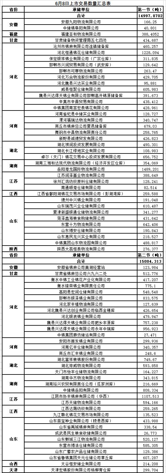 6月8日兩節(jié)共計輪出儲備棉30002.1832噸。第一節(jié)銷售儲備棉14997.8702噸,其中需要倒垛出庫97捆。第二節(jié)銷售儲備棉15004.313噸,其中需要倒垛出庫88捆。