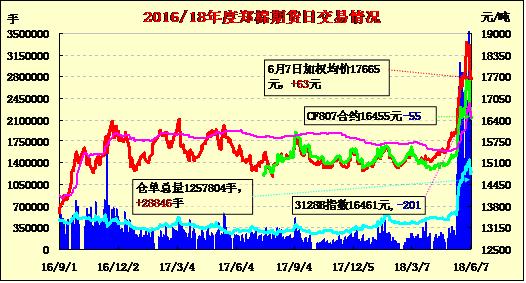 | CF811 | 17325 | 17425 | 17170 | 17350 | 17290 | -5 | 108 | -402 | 7928 | 1518 | 0 |