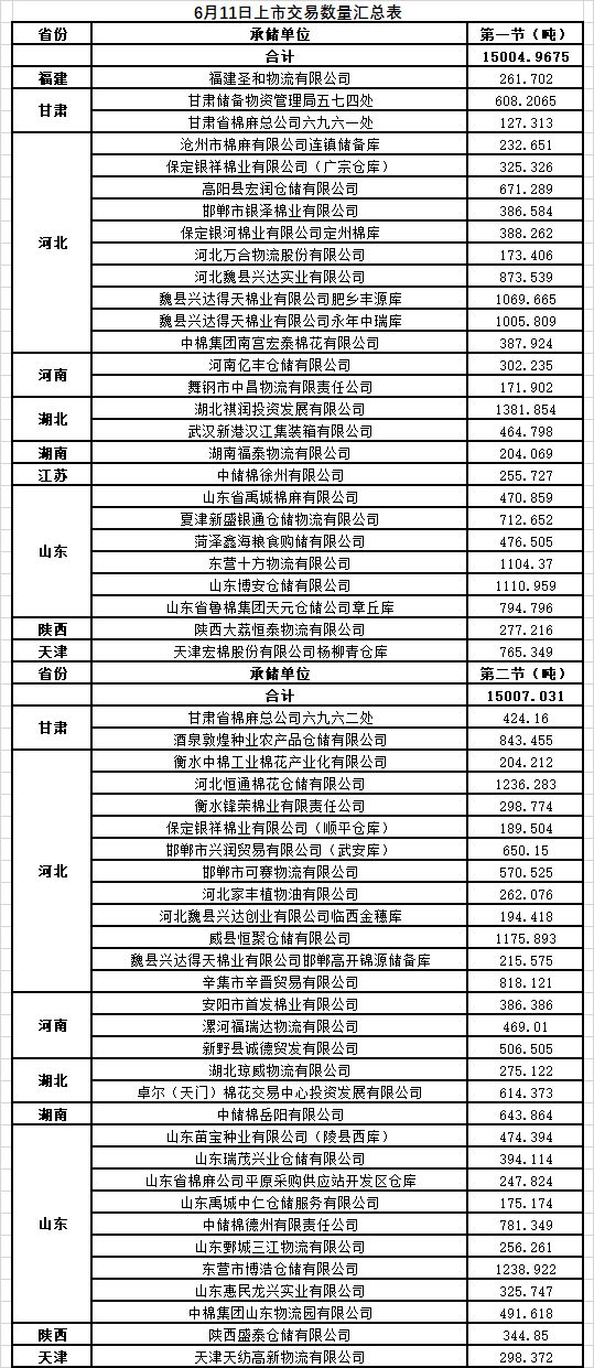6月11日兩節(jié)共計(jì)輪出儲(chǔ)備棉30011.9985噸。第一節(jié)銷售儲(chǔ)備棉15004.9675噸,其中需要倒垛出庫(kù)63捆。第二節(jié)銷售儲(chǔ)備棉15007.031噸,其中需要倒垛出庫(kù)101捆。
