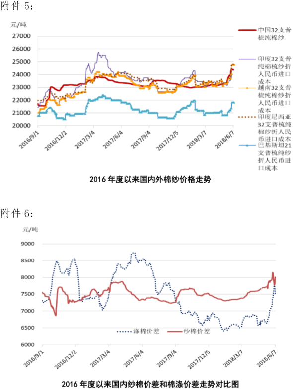 附件2:2018年6月4-8日國內(nèi)外棉紗價(jià)格變化表