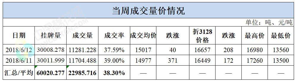 累計(jì)情況:截至6月12日,累計(jì)計(jì)劃出庫195萬噸,累計(jì)出庫成交124.8萬噸,成交率為64%;成交最高價17700元/噸,最低價12700元/噸。
