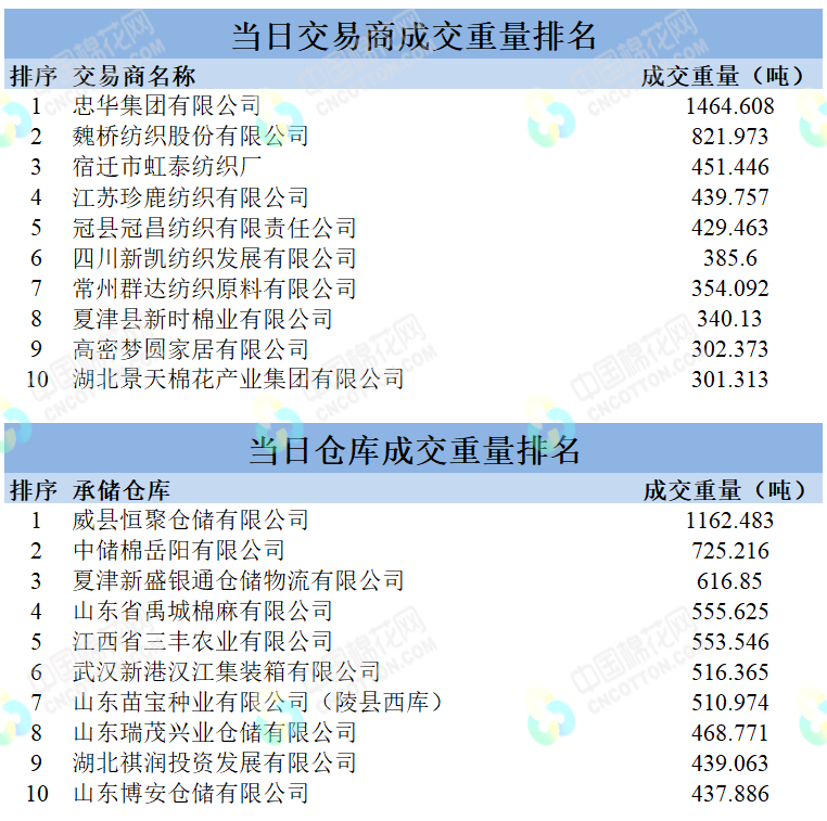 地產(chǎn)棉成交5845.753噸,成交率24%,成交均價14345元/噸,平均加價224元/噸,最高成交價15420元/噸,最低成交價13560元/噸;新疆棉成交5435.4754噸,成交率93%,成交均價15740元/噸,平均加價967元/噸,最高成交價16980元/噸,最低成交價14240元/噸。