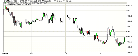 14日紐約期棉主力合約小幅收漲。1807合約結(jié)算價93.41美分,跌40點;1812合約結(jié)算價92.96美分,漲3點;1903合約結(jié)算價92.86美分,漲4點。當(dāng)日12月合約小幅低開,開盤后因缺乏有利支撐交易重心走低,在中國發(fā)布增發(fā)棉花進口滑準(zhǔn)稅配額公告之后,市場應(yīng)聲快速上行,后維持在93.00-93.40美分區(qū)間高位震蕩運行,至當(dāng)日高點93.33美分處賣盤入場,市場承壓下行,后維持震蕩運行態(tài)勢,臨近收盤買盤發(fā)力,交易重心受支撐走高,最終以小幅上漲收盤。據(jù)美國農(nóng)業(yè)部(USDA),6.1-6.7日一周美國凈簽約出口2017/18年度陸地棉7893噸(含新簽約19255噸,另取消11363噸前期訂單),較前一周大幅度增加,較近4周平均簽約量減少39%;裝運2017/18年度陸地棉104304噸,較前一周減少20%,較近4周平均增加4%。外圍美元指數(shù)上漲,玉米、小麥和大豆期貨下跌。