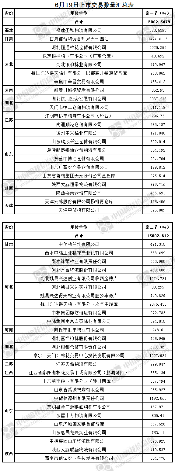 6月19日兩節(jié)共計(jì)輪出儲(chǔ)備棉30005.3599噸。第一節(jié)銷售儲(chǔ)備棉15002.5479噸,其中需要倒垛出庫57捆。第二節(jié)銷售儲(chǔ)備棉15002.812噸,其中需要倒垛出庫97捆。