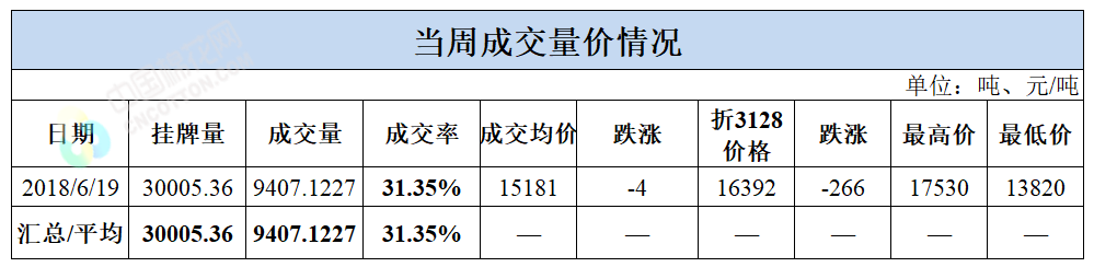 累計(jì)情況:截至6月19日,累計(jì)計(jì)劃出庫207萬噸,累計(jì)出庫成交129.1萬噸,成交率為62%;成交最高價(jià)17700元/噸,最低價(jià)12700元/噸。