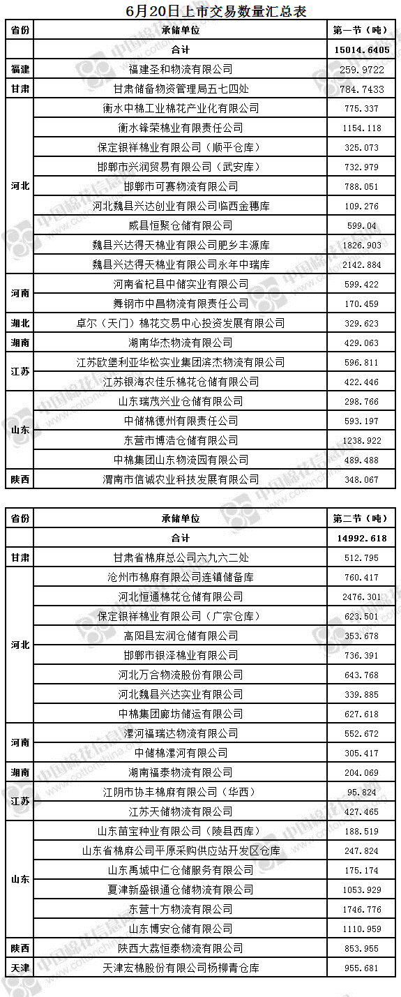 6月20日兩節(jié)共計輪出儲備棉30007.2585噸。第一節(jié)銷售儲備棉15014.6405噸,其中需要倒垛出庫78捆。第二節(jié)銷售儲備棉14992.618噸,其中需要倒垛出庫60捆。