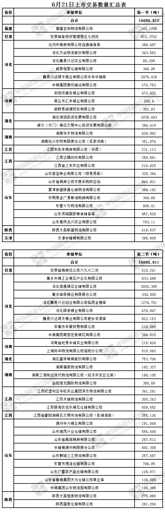 6月21日兩節(jié)共計(jì)輪出儲(chǔ)備棉30011.623噸。第一節(jié)銷售儲(chǔ)備棉15005.812噸,其中需要倒垛出庫(kù)71捆。第二節(jié)銷售儲(chǔ)備棉15005.811噸,其中需要倒垛出庫(kù)73捆。