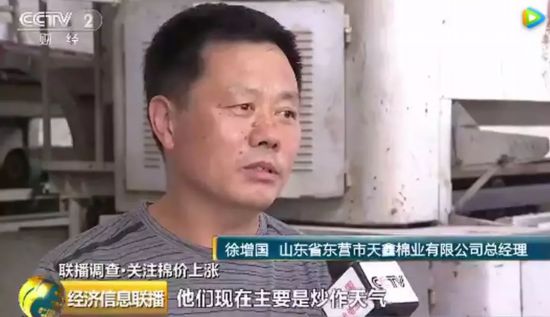 山東省東營(yíng)市天鑫棉花加工廠總經(jīng)理徐增國(guó):我認(rèn)為一大部分是在炒作吧,他們現(xiàn)在是在炒作天氣。