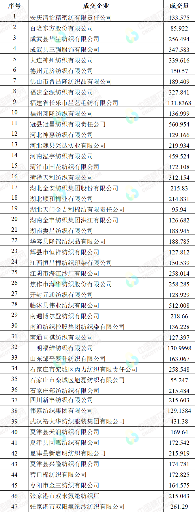 地產(chǎn)棉成交3550.073噸,成交率17%,成交均價(jià)14779元/噸,平均加價(jià)147元/噸,最高成交價(jià)15980元/噸,最低成交價(jià)13580元/噸;新疆棉成交6498.6噸,成交率72%,成交均價(jià)15453元/噸,平均加價(jià)583元/噸,最高成交價(jià)16140元/噸,最低成交價(jià)14670元/噸。