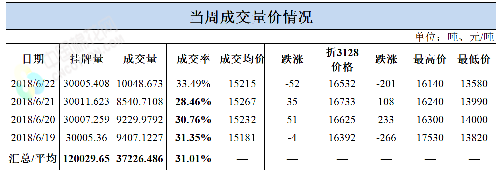累計(jì)情況:截至6月22日,累計(jì)計(jì)劃出庫216萬噸,累計(jì)出庫成交131.8萬噸,成交率為61%;成交最高價(jià)17700元/噸,最低價(jià)12700元/噸。