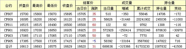 主力CF809合約當日交易走勢圖