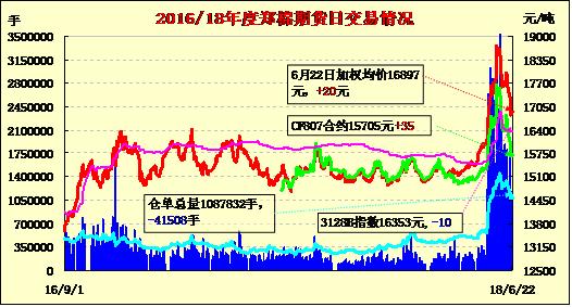 6月22日隔夜鄭棉探低回穩(wěn),今日盤中區(qū)間震蕩,午前一度沖高,午后回落盤整,日線形成星線。日內(nèi)成交量萎縮,持倉量減少?;久媲闆r:6月中旬,全疆降水量10mm,較常年偏多2成。其中北疆4.1mm,較常年偏少近5成;南疆7.8mm,偏多8成;天山山區(qū)31.3mm,偏多4成。就空間分布來看,旬內(nèi)南疆、東疆大部和天山山區(qū)大部降水較常年偏多。尤其是阿克蘇地區(qū)大部、哈密市北部地區(qū)、克州西部山區(qū)、喀什南部、和田部分地區(qū)等降水量較常年偏多1~3倍。其中,阿合奇偏多2.7倍,偏多幅度居歷史同期第一位;溫宿、莎車、烏什、巴里坤偏多幅度居歷史同期第二位;阿拉爾、阿克蘇、淖毛湖、柯坪偏多幅度居歷史同期第三位。北疆大部較常年偏少2~9成。焉耆、鐵干里克、阿勒泰地區(qū)中西部和吐魯番等地共9站無降水。