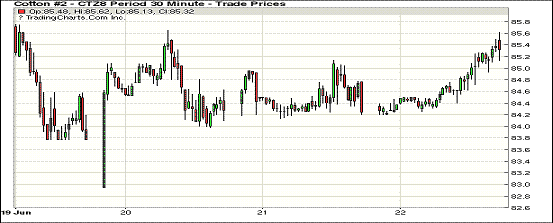 6月22日紐約期棉市場全面收漲。1807合約結(jié)算價85.43美分,漲222點(diǎn);1812合約結(jié)算價85.30分,漲101點(diǎn);1903合約結(jié)算價84.89美分,漲93點(diǎn)。其他合約上漲46-89點(diǎn)不等。12月合約小幅高開,開盤后因缺乏有利支撐交易重心圍繞84.40美分一線震蕩運(yùn)行,后買盤入場,市場受支撐走高,最終以大幅上漲收盤。受中美貿(mào)易摩擦升級影響,本周前兩個交易日期棉市場連續(xù)下跌。雖然由于價格下跌使得紡企現(xiàn)貨詢價增多,現(xiàn)貨成交量有所增加,但依然遠(yuǎn)不足以填平之前的跌幅。外圍美元指數(shù)下跌,玉米和小麥期貨下跌,大豆期貨上漲。美股漲跌不一,道指和標(biāo)普上漲,納指跌勢持續(xù)。