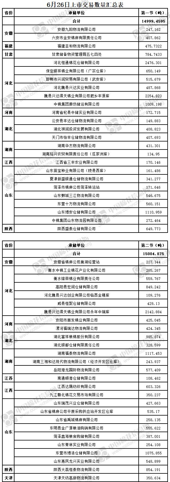 6月26日兩節(jié)共計(jì)輪出儲(chǔ)備棉30004.3345噸。第一節(jié)銷售儲(chǔ)備棉14999.4595噸,其中需要倒垛出庫75捆。第二節(jié)銷售儲(chǔ)備棉15004.875噸,其中需要倒垛出庫84捆。