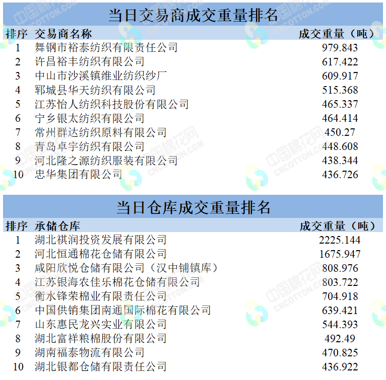 地產(chǎn)棉成交10735.156噸,成交率48.46%,成交均價14043元/噸,平均加價224元/噸,最高成交價16000元/噸,最低成交價13380元/噸;新疆棉成交6934.2972噸,成交率88.37%,成交均價15169元/噸,平均加價1118元/噸,最高成交價16920元/噸,最低成交價14060元/噸。