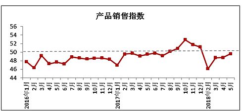 5月生產(chǎn)指數(shù)50.88,與4月相比下降0.52,低于預(yù)期。5月紗廠生產(chǎn)依然繁忙,員工流動(dòng)變化小。坯布市場(chǎng)已有走淡跡象,織廠開臺(tái)率下降,部分織廠表示接單情況較前期減少,導(dǎo)致5月生產(chǎn)指數(shù)較4月下降。跟蹤企業(yè)數(shù)據(jù)顯示,5月紗產(chǎn)量環(huán)比增加2%,布產(chǎn)量環(huán)比減少3.98%。調(diào)研了解,6月生產(chǎn)差別化產(chǎn)品的企業(yè)訂單仍然較多,一些長單甚至排到10月底,相比之下,生產(chǎn)常規(guī)產(chǎn)品的企業(yè)后續(xù)訂單略顯不足,坯布市場(chǎng)延續(xù)走弱基調(diào),生產(chǎn)指數(shù)繼續(xù)下降。